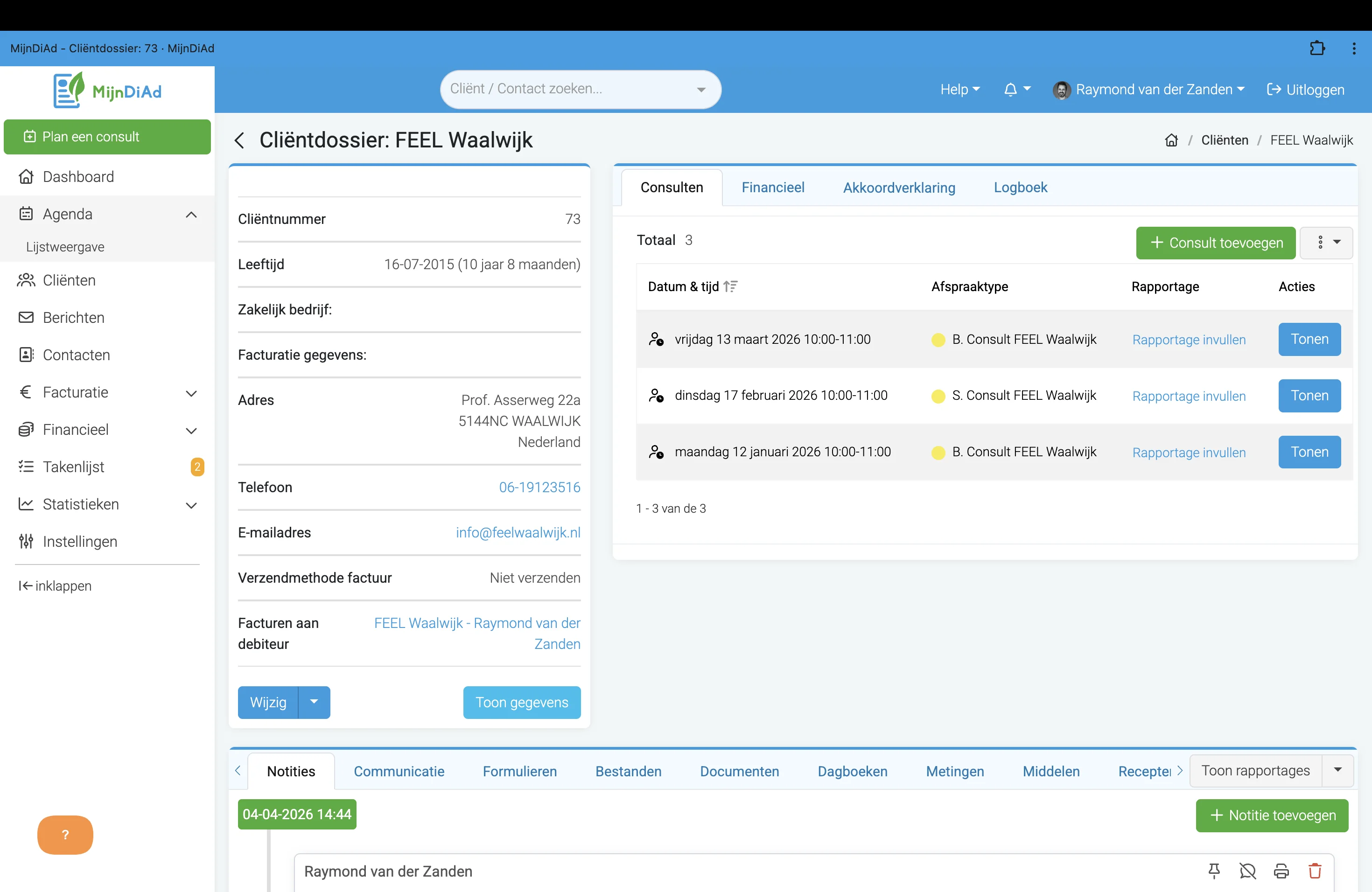 Bij FEEL werken we met een professioneel systeem voor registratie en begeleiding: MijnDiAd.